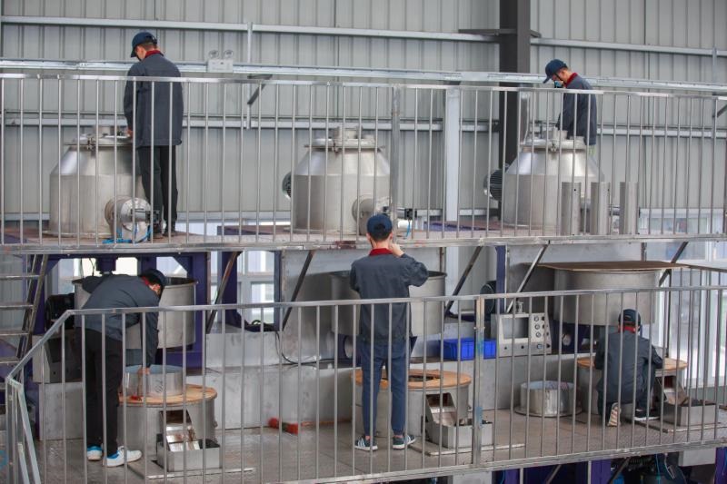 三套生產型濕法制粒/擠出滾圓一體機基本完工,到了最后的調試階段
